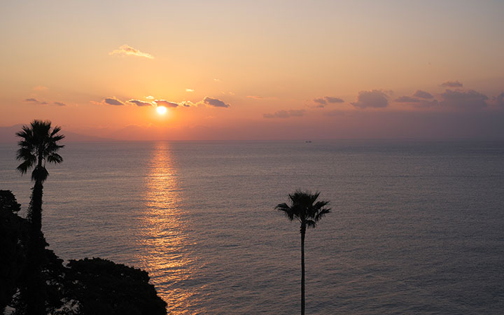 杉本錬堂のみが知る朝の散歩道、そこには大自然が織りなす絶景があります。水平線から覗く太陽を目で見て温もりを肌で感じてみてください。きっと、ココロもカラダもリセットされ清々しく素敵な一日のスタートが始まることでしょう。リセットされたカラダは感覚も洗練されこれまでとは違った感覚が得られるかもしれません。